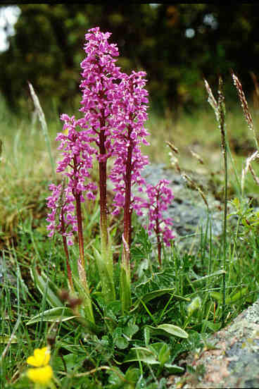 Das Stattliche Knabenkraut (Orchis mascula) bildet in der Stora Alvarett an geeigneten Stellen ausgedehnte Rasen.