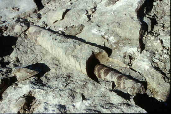 Die Versteinerung eines Kopffüßers aus dem Kambrium (Orthocera)