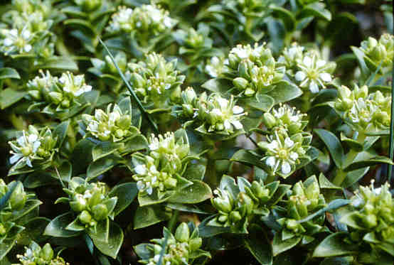 Unmittelbar auf dem rohen Strandkies bildet die Salzmiere (Honckenya peploides) dichte Rasen.