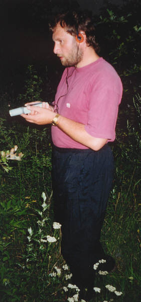 ...fachübergreifend: Botaniker mit Fledermausdetektor bei Fachgruppenexkursion... |