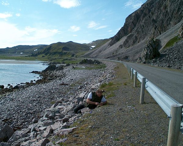 Botanik am Straßenrand: Besonders die gestörten Stellen der geschotterten Bankette an der Eismeerküste beherbergen so manches botanische Highlight.