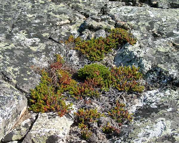 Felsheidenvegetation wird im borealen Gebiet vor allem durch die Krähenbeere (Empetrum hermaphoditum) bestimmt.