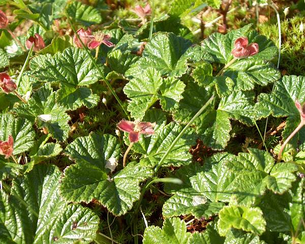 Die Moltebeere (Rubus chamaemorus) kurz nach der Blüte. Die gelben "Brombeerfrüchte" gelten im hohen Norden als Delikatesse und wichtigster Vitamin C-Lieferant.